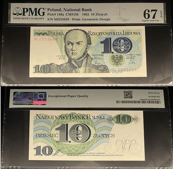 Banknot 10 złotych 1982 PMG 67 EPQ