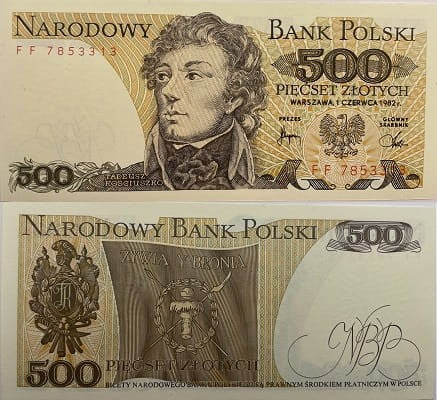 Banknot 500 zł 1982 Tadeusz Kościuszko stan 1