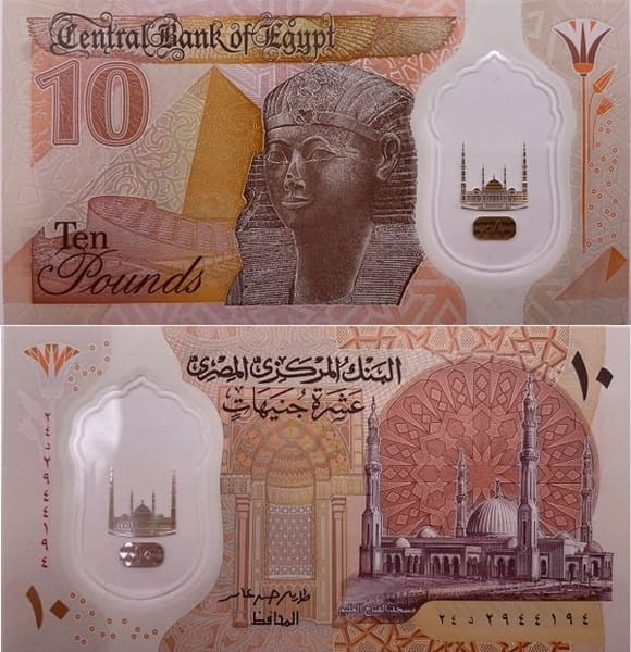 10 funtów 2022 r. - banknot 10 funtów Egipt z kategorii obiegowe banknoty świata Afryka, Azja, materiał polimer stan UNC