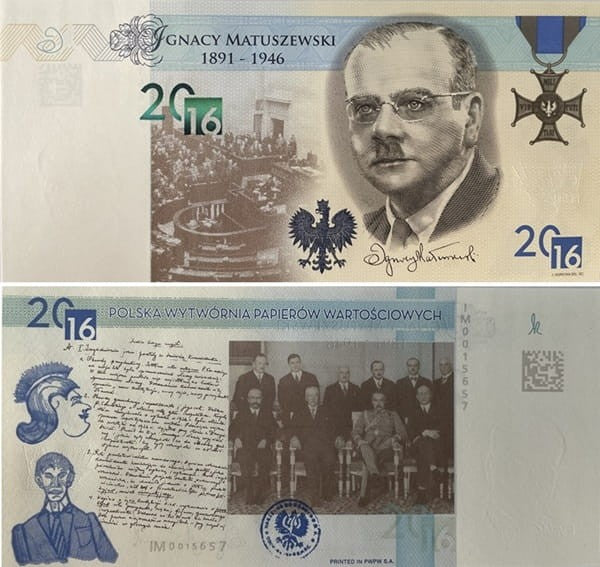 Ignacy Matuszewski PWPW 2016 banknot testowy