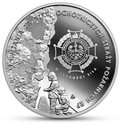 10 złotych 100-lecie Ochotniczej Straży Pożarnej 2022 r. - srebrna moneta kolekcjonerska 10 złotych NBP, producent Mennica Polska S.A., temat indywidualny, stempel lustrzany, moneta w kapslu pudełku z certyfikatem, stan zachowania menniczy