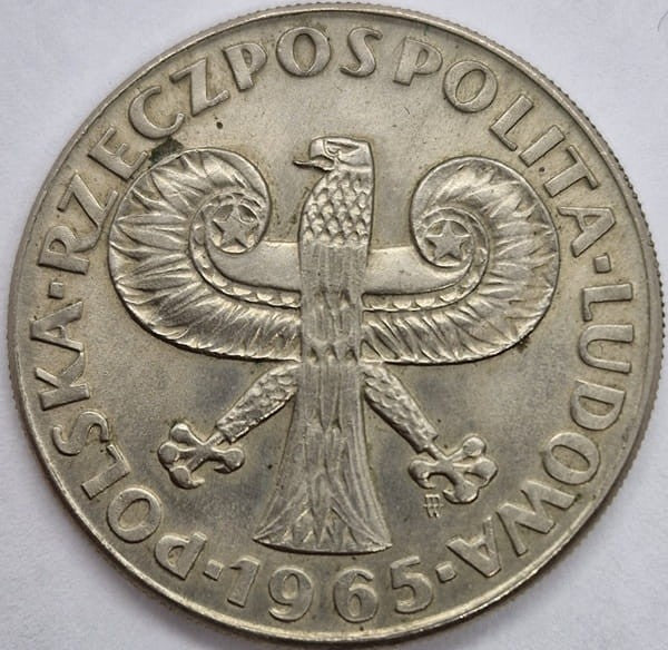 Na awersie orzeł bez korony. W otoku monety dużymi literami napis: Polska Rzeczpospolita Ludowa. Na awersie nie ma podanego nominału monet. Znajduje się on na rewersie. U dołu monety przy rancie rok emisji 1965. Pod lewą łapą orła, między szponami znak mennicy: m/w