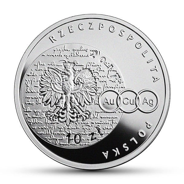 Na awersie monety przedstawiono fragment rękopisu „Rozprawa o biciu monety” Mikołaja Kopernika. Lekko przesunięty w lewa stronę orzeł w koronie ustanowiony dla godła Rzeczypospolitej Polskiej. Przy rancie w otoku napis dużymi literami: Rzeczpospolita Polska. Pod orłem nominał monety 10 zł. Obok orła okręgi (monety) ze oznaczeniem Au, Cu, Ag