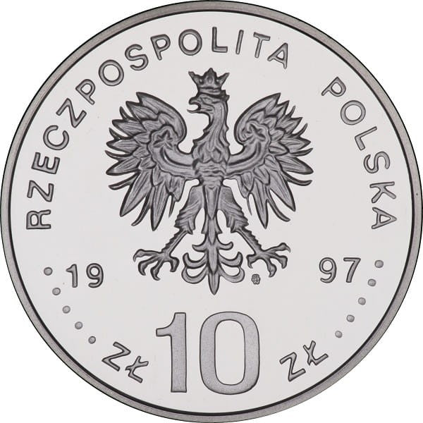 Srebrna moneta kolekcjonerska z kategorii monety 10 złotych, emitent NBP, producent Mennica Polska S.A., stempel lustrzany, metal / stop srebro Ag 925, średnica 27 mm, masa 8,15 gram, rok emisji 1997, nakład emisji 5 250 sztuk, projektant rewersu Ewa Tyc-Karpińska, moneta mennicza w kapslu ochronnym, stan zachowania L/L