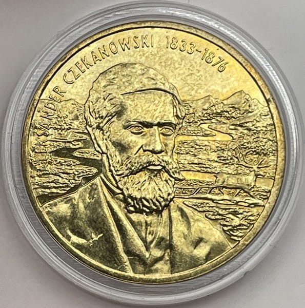 Czwarta moneta z serii Polscy podróżnicy i badacze spośród dziewięciu emisji. moneta także wybita w srebrze 10 zł Czekanowski 2004 rok.