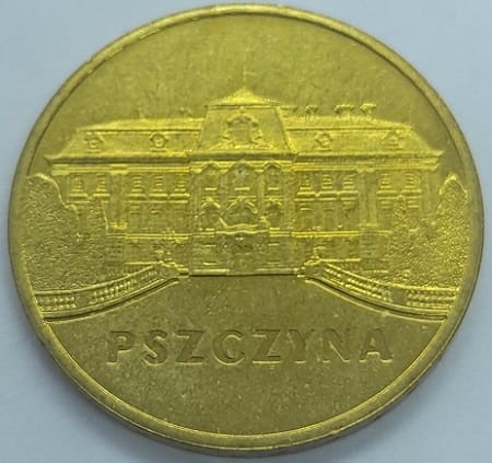 Na rewersie w jej centrum widnieje stylizowany wizerunek elewacji północnej Muzeum Zamkowego w Pszczynie. Z lewej i prawej strony monety stylizowana wizerunki balustrad tralkowych i drzew. U dołu monety poziomo napis: PSZCZYNA