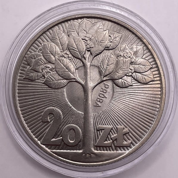 Moneta 20 zł Kwitnące drzewo 1973 r. próba