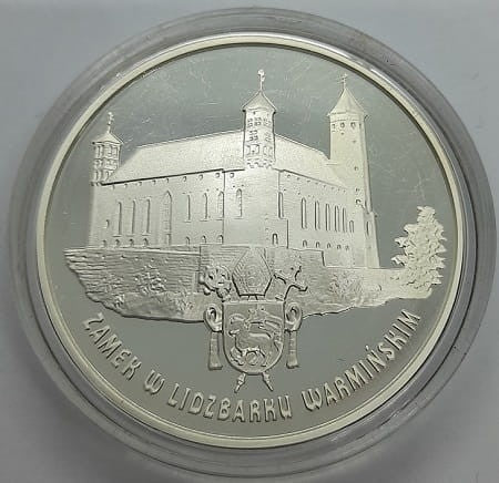 Na rewersie monety widać zamek w Lidzbarku Warmińskim od południowego wschodu, w dolnej części monety herb biskupstwa warmińskiego. Poniżej półkolem napis dużymi literami: Zamek w Lidzbarku Warmińskim