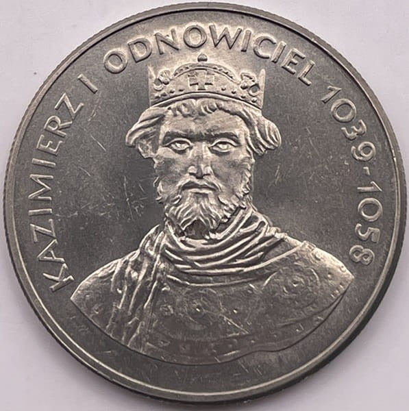 50 zł Kazimierz Odnowiciel 1980 r. - moneta okolicznościowa PRL miedzionikiel 50 złotych NBP, producent Mennica Polska S.A., z serii Poczet Królów i Książąt Polskich, stempel zwykły, stan zachowania 1/-1