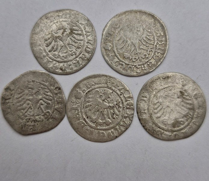 Półgrosz Aleksander Jagiellończyk 1502-1506 rok - historyczne srebrne monety z lat 1502-1506. Monety bez bite bez dat. Stan zachowania obiegowy, ale nieźle czytelny.
