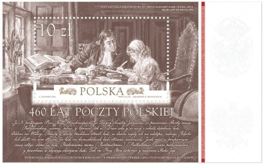 Blok 460 lat Poczty Polskiej 2018 r. - bloczek zawierający znaczek kolekcjonerski o ograniczonym nakładzie 180 000 sztuk, emitent Poczta Polska, projektant Agnieszka Sancewicz, stan zachowania nowy